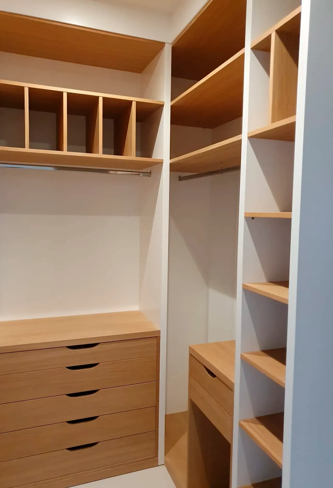 La clave de un armario funcional es combinar estantes, cajones y barras de manera eficiente, facilitando el acceso a todos los elementos almacenados.